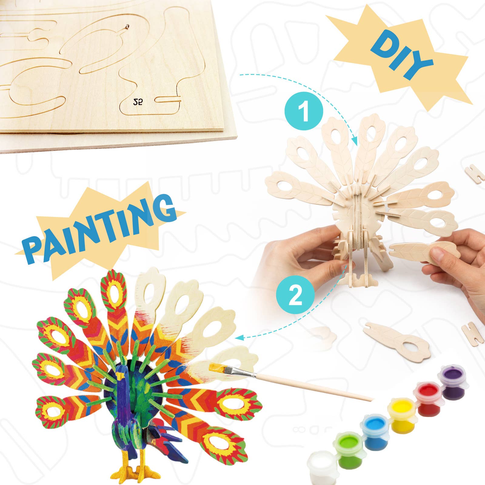 DIY- Assemble and paint wooden puzzles. No additional tools or glue needed.
