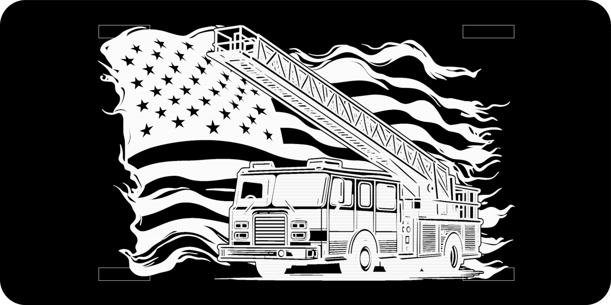 Enhance your patriotic spirit with these .040 thick anodized aluminum tags featuring a fire truck in front of the American flag. Made with rounded corners and pre-punched holes for easy mounting, these 12" X 6" tags are expertly crafted for durability and quality. Show off your love for firefighters and the USA.