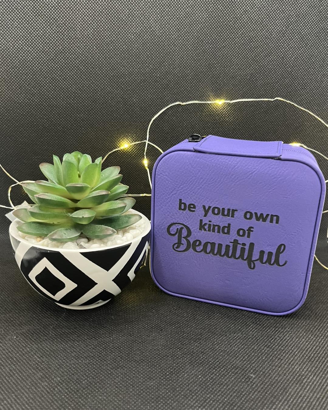 The "Be Your Own Kind of Beautiful" travel jewelry box offers a secure and charming way to keep your jewelry organized while you’re on the move. Designed to protect your precious pieces, it helps you stay prepared and confident, no matter where your journey takes you. This box is a thoughtful companion for anyone who values both style and practicality.
