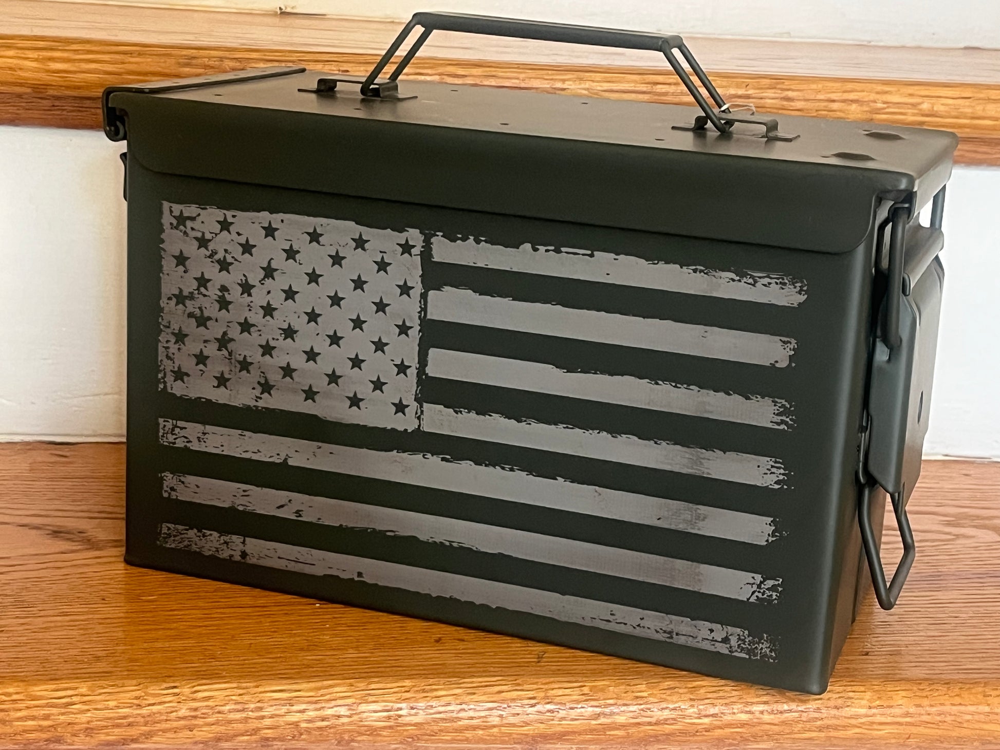 Laser Engraved Ammo Box with Rustic American Flag